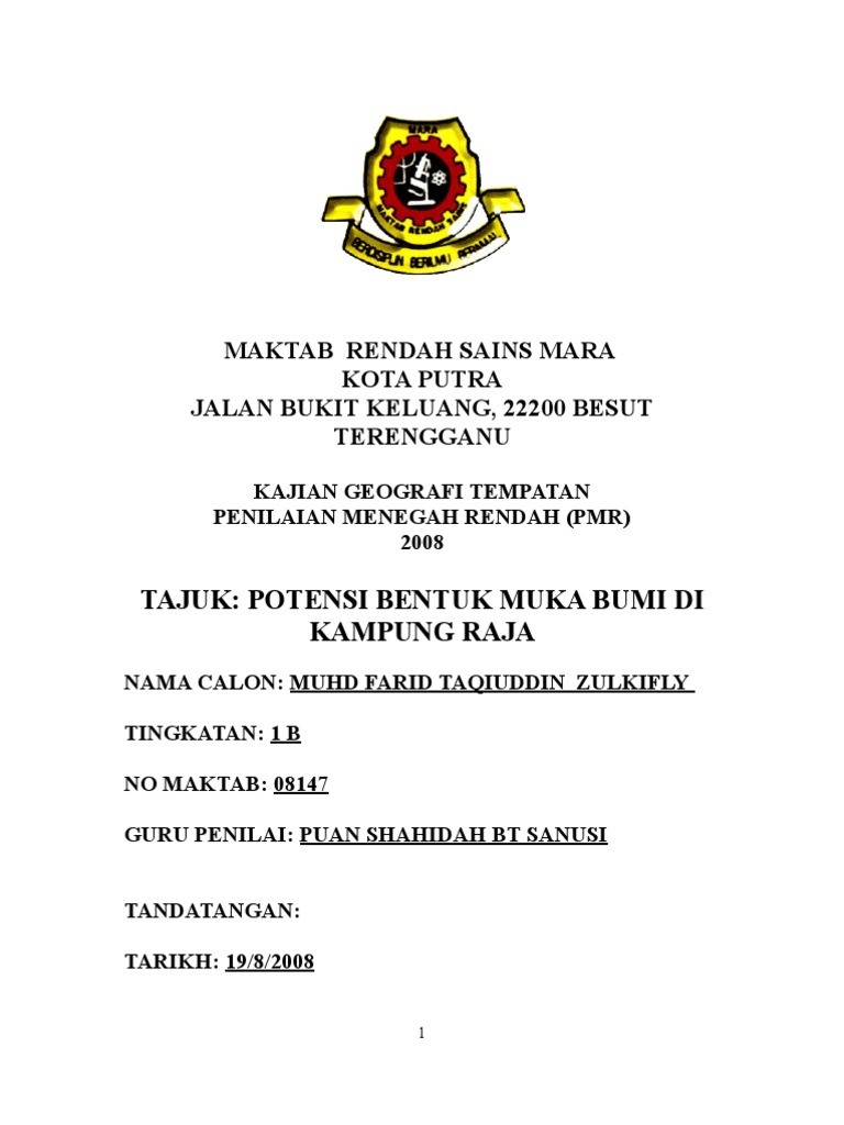 Related : Contoh Kerja Kursus Geografi Tingkatan 1 Potensi Bentuk Muka Bumi - Contoh tajuk / isu kerja kursus geografi pt3..